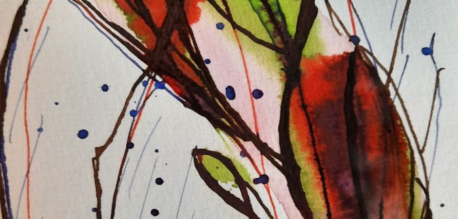 1999-2025Naar aanleiding van een foto werk ik een idee uit in gemengde techniek op papier